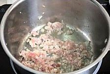锅里放入少许橄榄油,倒入猪肉小火炒至金黄色装起备用