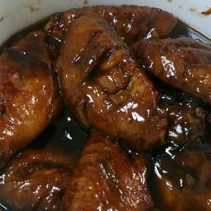 将鸡翅放入油内翻炒至金黄色,加入酱油翻炒,放入可乐,将鸡翅淹没,盖盖小火收汁。