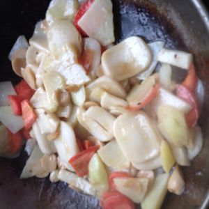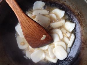放入年糕,加些水,炒