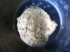 倒入芝麻,把自己揉进去,不需要揉太久、均匀光滑即可