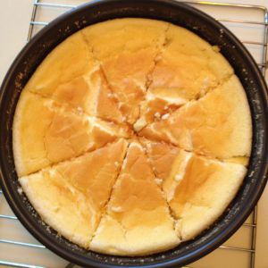 烤好取出晾凉,可以不倒扣,冷藏后食用更具风味口感如轻乳酪蛋糕。
