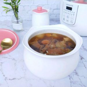 到最后15分钟左右的时候加入鲜鸡汁和少许盐调味。时间到就可以端出来,营养丰富的排骨汤就做好了。