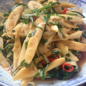 美味的韭菜炒竹笋就OK啦,妈妈的味道哦。