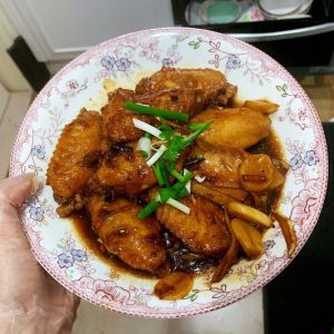 鸡翅腌制一下,放入生姜丝和料酒、盐 腌制20分钟。