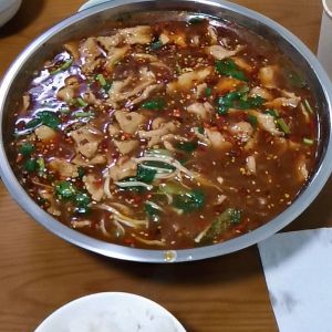水开以后下肉片,肉熟以后整锅倒入盛有配菜盆中