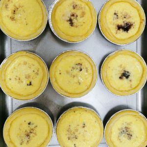 放入烤箱:上下火200度,半个小时。(一定要随时观察蛋挞,如表皮已成焦黄色即可取出)
