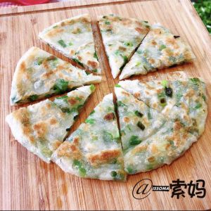把面团擀开,越薄越好,卷出层次多,面片刷油,放葱花