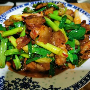 我炒回锅肉都不倒油的,只要是五花肉,切片后直接入锅,都能炒出很多油,等肉有卷状的时候,就放一点老抽,豆瓣酱,炒香后,放点糖提色,然后倒入蒜苗,先放蒜苗头,炒两下,再放叶子,起锅,香喷喷的回锅肉就做好了。
