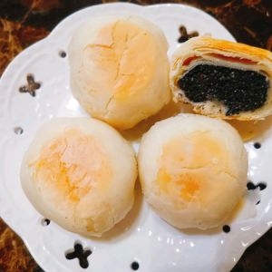 包入准备好的黑芝麻馅,如果觉得不好包或者不喜欢馅料太多的话可以少包一点馅