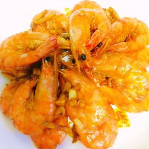 锅内加油烧热,放入虾进油锅,小火慢煎