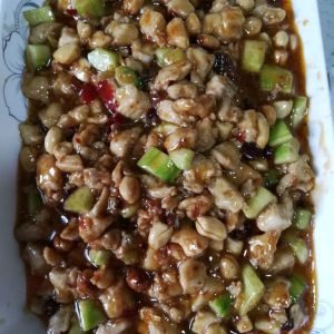 热锅冷油,下葱丁,姜末,蒜末,干辣椒,花椒,一勺豆瓣酱煸炒,下入鸡丁炒匀,中火即可,放入黄瓜丁和花生米