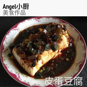 豆腐捞出摆盘,把皮蛋铺上去,再撒上榨菜