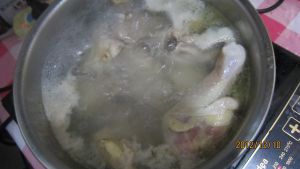 先用热水滚烫一下鸡腿.把脏东西煮掉
