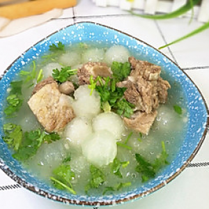 将冬瓜排骨汤盛入汤碗中,美味可口的这道汤菜是不是很诱人呢?