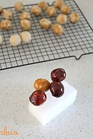 牙签插入栗子酥,包裹上一层焦糖晾凉即可