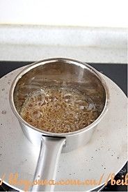 糖浆材料混合小火煮至焦糖色,浸冰水中立即降温