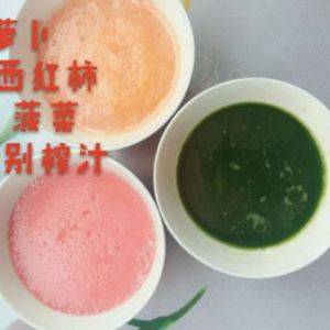 准备胡萝卜,西红柿,菠菜分别炸成汁