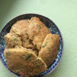 淀粉打湿,打入鸡蛋打散搅拌成糊状。