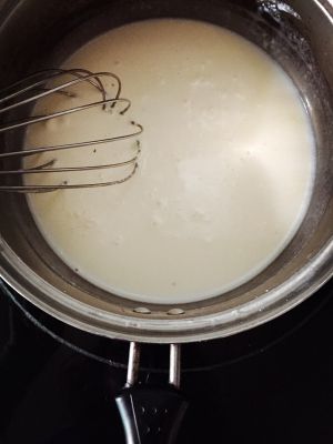 淡奶油、牛奶、砂糖放一起,小火加热至糖溶化(孕傻的我退化到不懂表达了)