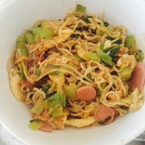 放入面条,豆瓣酱,此处推荐老干妈豆豉