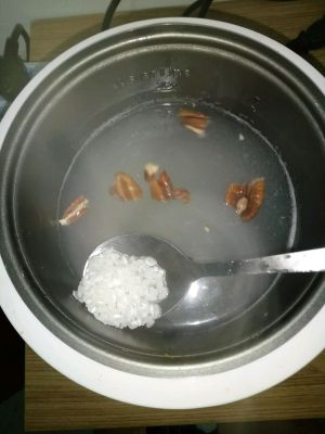 将果仁剥壳,和大米一起加入适量水,开启煮粥模式
