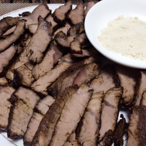 切片,手撕都可以/沾自己喜欢的蘸料--本人用的是椒盐粉--超市即可找到