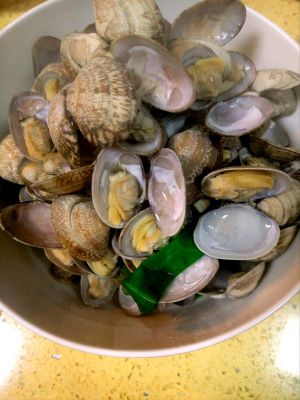 放入水里汆水至花甲裂开,水里要放姜,葱,料酒