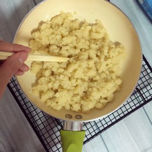 一直搅拌到面粉和水融合。就把锅从炉子上取下来。
