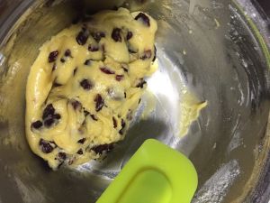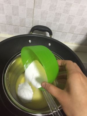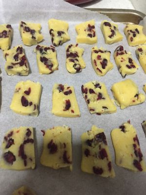 搅拌好的面粉糊倒入油纸整形后冷藏冰箱。直到变硬好切片