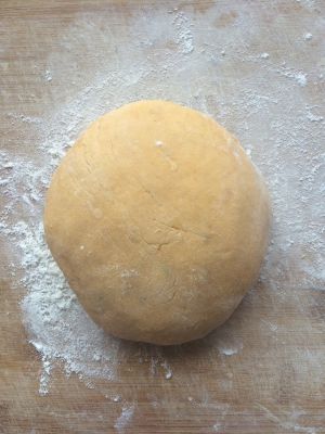 逐渐的把所有面粉和红薯泥均匀的搅拌在一起 再碾压一会 让红薯泥变的均匀没有疙瘩