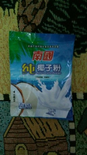 将洗净泡软的葡萄干、白糖、椰粉加入牛奶中,用中小火煮开。