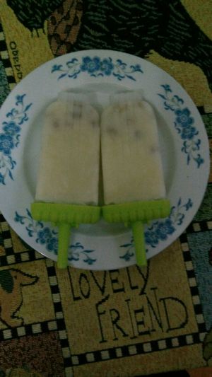 用手捂住冰棒模约30秒,很轻松就脱模了,即可食用。冰棒味道很好,不亚于外面卖的,奶味很浓。