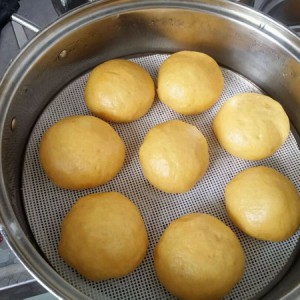蒸30半小时,馒头用勺子按上去,不留印子即熟透。蒸好后5分钟后开盖,避免回缩。