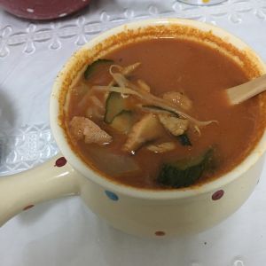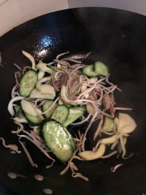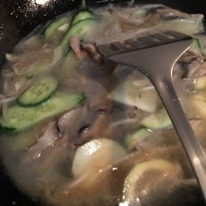 加淘米水。。烧开后放酱!大概两勺就行!多煮一会儿装碗就行了!