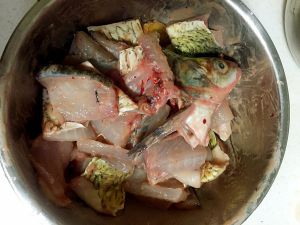 鱼切成小块加入盐,淀粉,料酒抓匀,放入姜片包上保鲜膜腌制半小时。
