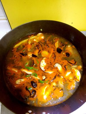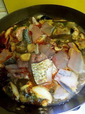 煮沸后一块一块下入鱼块,再次煮沸,大火煮三分钟关火,加入鸡汁出锅。