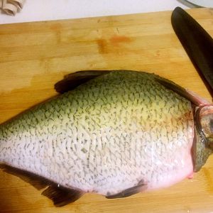 洒上大葱、蒜蓉、干辣椒,起油锅,下入花椒爆香,泼在鱼上,再洒上香菜,小葱即可食用。