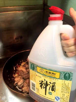 加入料酒,继续翻炒,直至料酒全部挥发。