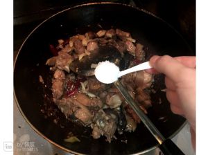 待鸡肉上色后,加入少量热水,大火炖3分钟。