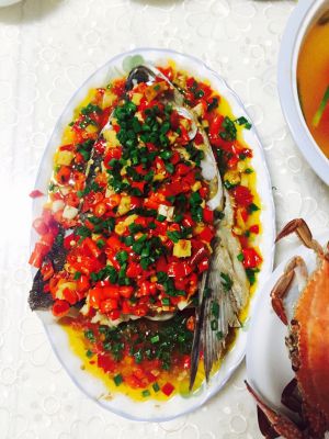 然后,洒上葱花,一道美味的剁椒鱼头就可以开吃了