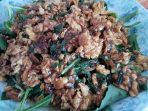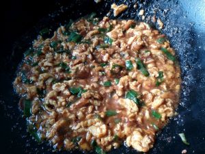 放入泄好的豆掰酱,再翻炒,之后放入水淀粉翻勺,关火。
