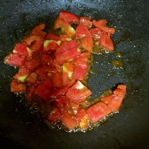 锅热底油,下番茄炒.