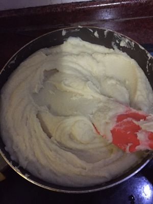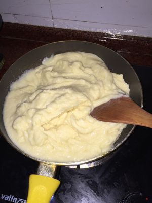 稍稍炒干以后加入糖跟黄油 炒到成团为止