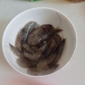 虾洗净用刀片开虾的背部,去掉虾线(带锯齿的小刀好片)。