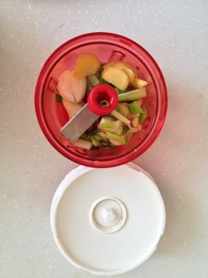葱、姜、蒜剁成细末(越细越好),我用小旋风打碎。