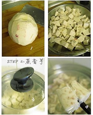 蒸香芋:香芋去皮,切小块,蒸锅蒸至香芋约20分钟至粉糯(筷子能轻松穿过),备用。