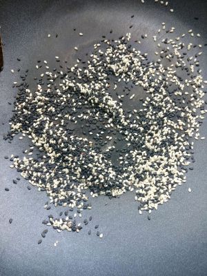 黑白芝麻,锅微热放下去炒一会,就是芝麻快要跳锅倒出来备用。