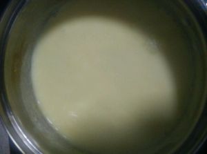 一直不停的搅拌 煮到粘稠 关火 放入凉水中 放温