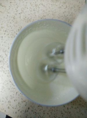 加白砂糖(适量)用打蛋器打至 颜色变浅 大概这个样子就好了