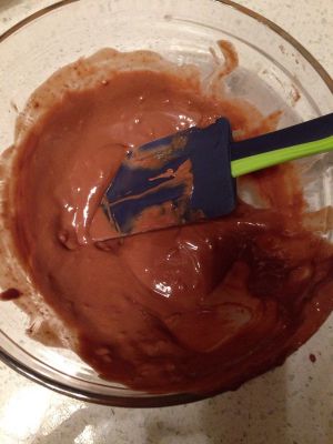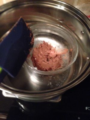 隔水加热,使巧克力融化(可以直接用巧克力酱)
